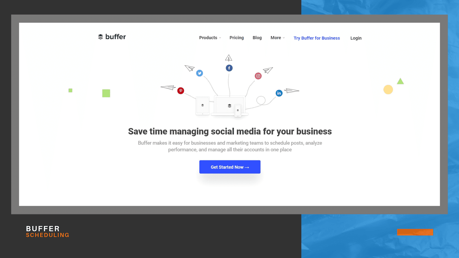 Buffer is another social media management platform that’s incredibly similar to Hootsuite. It also allows you to manage several social media networks at once. Its features include scheduling posts, replying to followers, and analyzing performance.