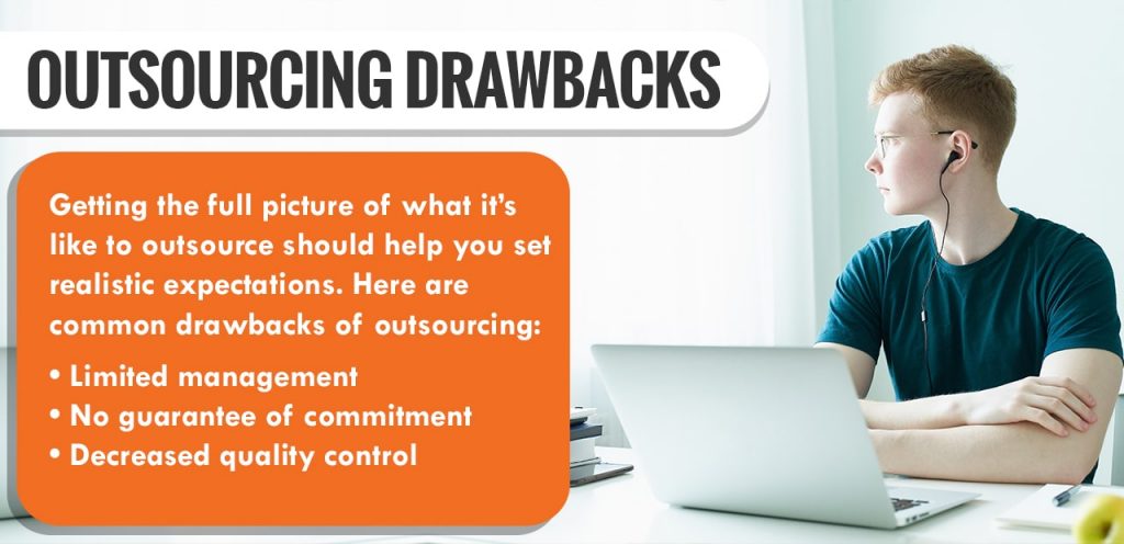 Getting the full picture of what it’s like to outsource should help you set realistic expectations. Here are common drawbacks of outsourcing: