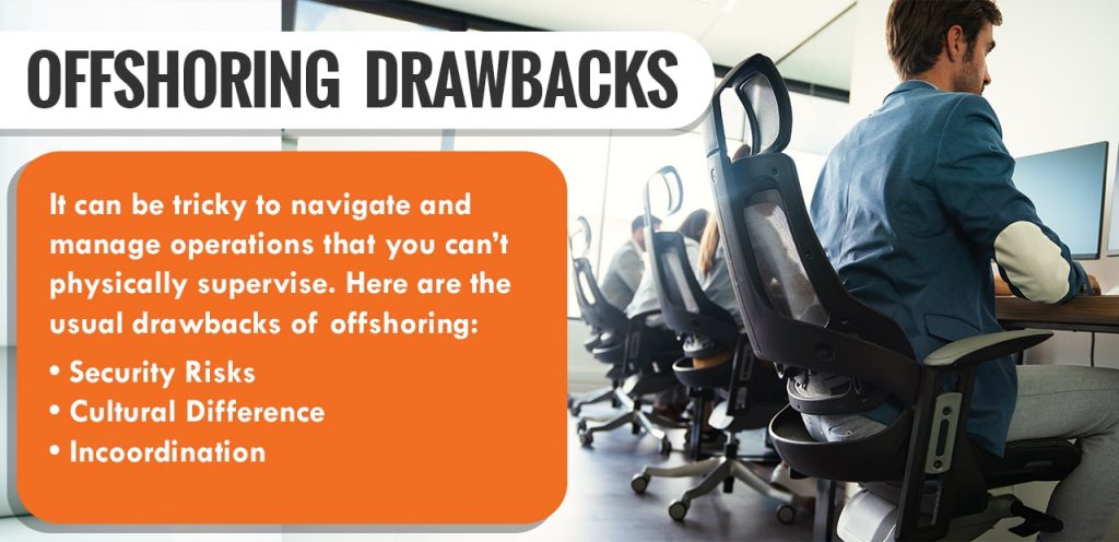 It can be tricky to navigate and manage operations that you can’t physically supervise. Here are the usual drawbacks of offshoring: