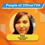 Elise: I’m a VA Profile Specialist at 20four7VA. I create and validate VA packets before they’re sent to clients. I ensure that each VA packet showcases the VA’s skills and strengths so clients can find the best addition to their team. This responsibility requires focus, creativity, and collaboration with my team.